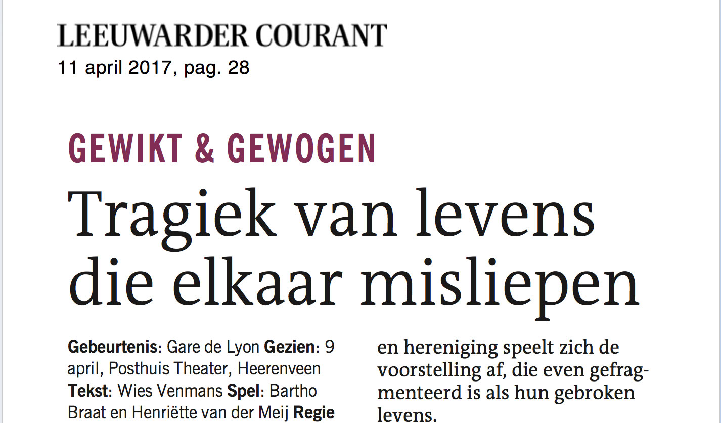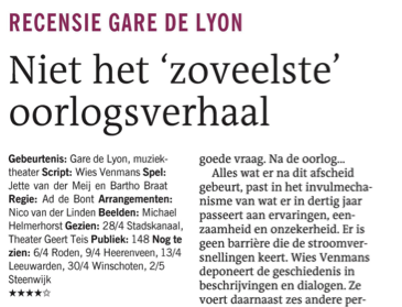 “Gare de Lyon is door sterk script en spel, en een strakke montage, een spannende voorstelling geworden”.